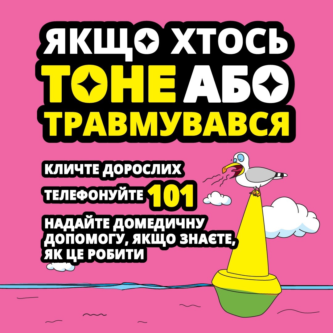 - Не стрибати у воду самостійно! Надати домедичну допомогу лише у випадку, якщо маєте відповідні навички та не наражаєте себе на небезпеку.