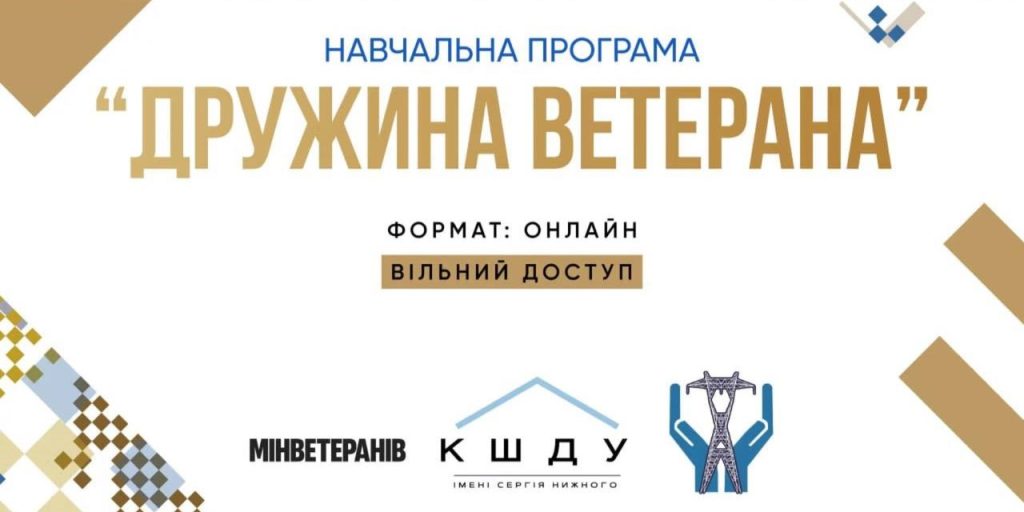 Міністерство у справах ветеранів України інформує, що у 2025 році громадська організація “Київська школа державного управління імені Сергія Нижнього” започаткувала та реалізує навчальну онлайн-програму “Дружина ветерана”.