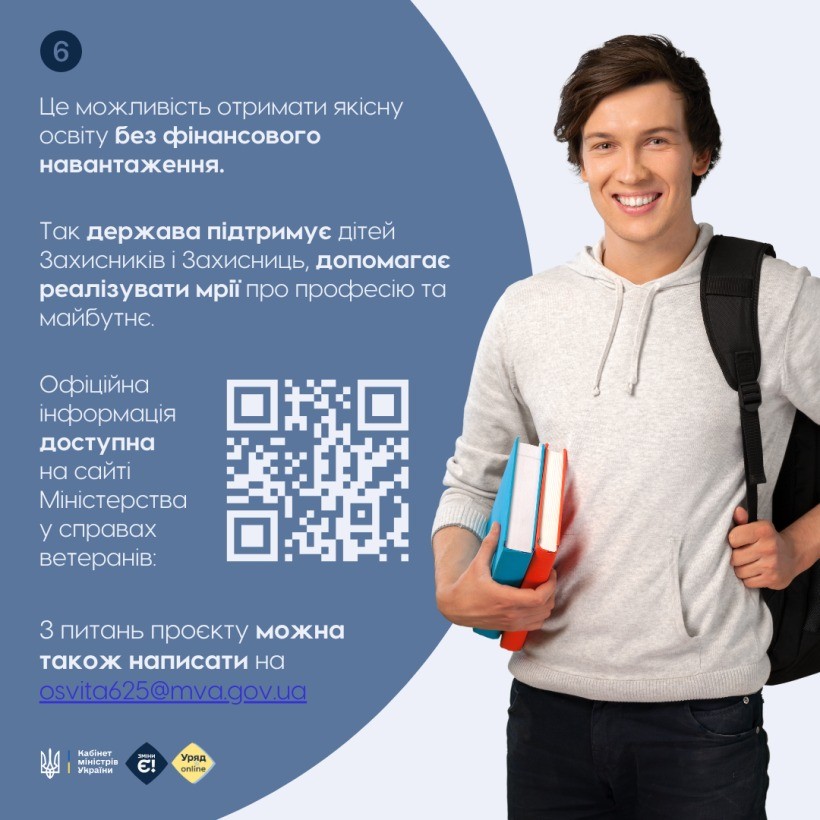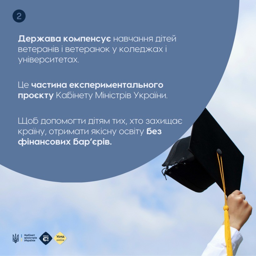 ержава компенсує вартість навчання дітей ветеранів і ветеранoк. Це частина експериментального проекту Кабінету Міністрів України.