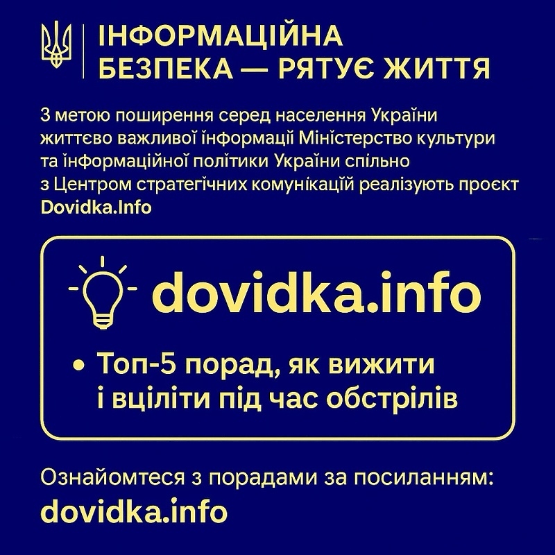 Нині у мережі можна знайти багато інформації про те, які правила безпеки діють, які ні. Однак сприймати таку інформацію варто обережно. Бо точно пояснити алгоритм порятунку в тій чи іншій небезпечній ситуації можуть лише фахівці у цій справі. Саме тому проєкт Dovidka.info Центру стратегічних комунікацій уже четвертий рік спільно з профільними державними органами розробляє вивірені інструкції з безпеки.