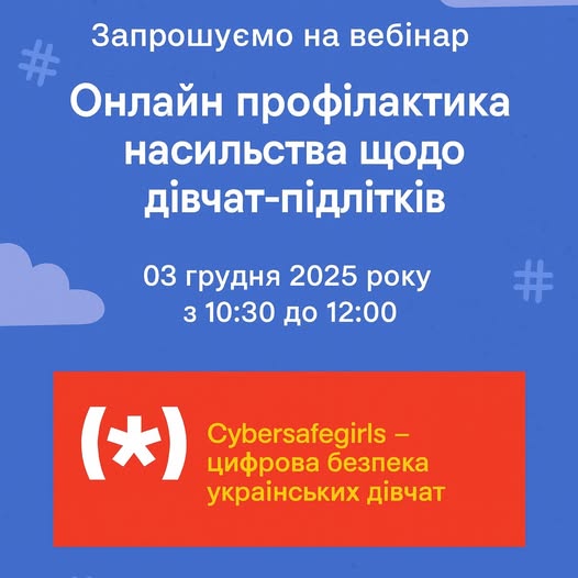 Вебінар проводиться в рамках трирічного проєкту “Cybersafegirls – цифрова безпека українських дівчат” спрямована на запобігання сексуального онлайн насильства щодо дівчат-підлітків, які постраждали від конфлікту в Україні.