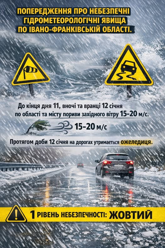 ПОПЕРЕДЖЕННЯ ПРО НЕБЕЗПЕЧНІ ГІДРОМЕТЕОРОЛОГІЧНІ ЯВИЩА ПО ІВАНО-ФРАНКІВСЬКІЙ ОБЛАСТІ