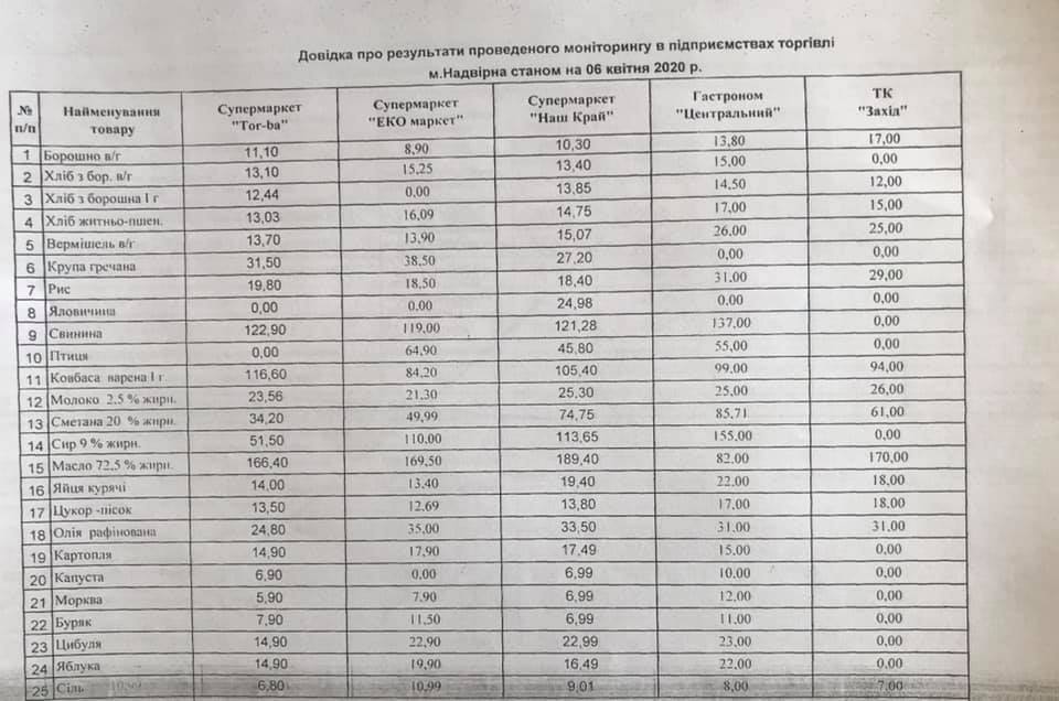 Ціни на продукти харчування в торгових точках м. Надвірна Головна Надвірнянська РДА Моніторинг станом на 06.04.2020 року. Додатки 06.04.2020 Розмір файлу: 80 KB Завантаження: 236