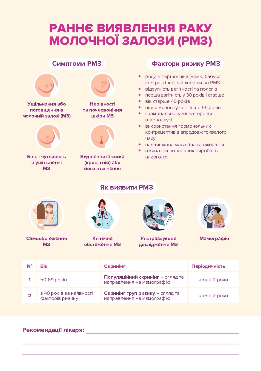 Рання діагностика рятує. МОЗ України проводить інформаційно-просвітницьку кампанію для зміцнення здоров’я населення, раннього виявлення захворювань та формування навичок відповідального ставлення до свого здоров’я.