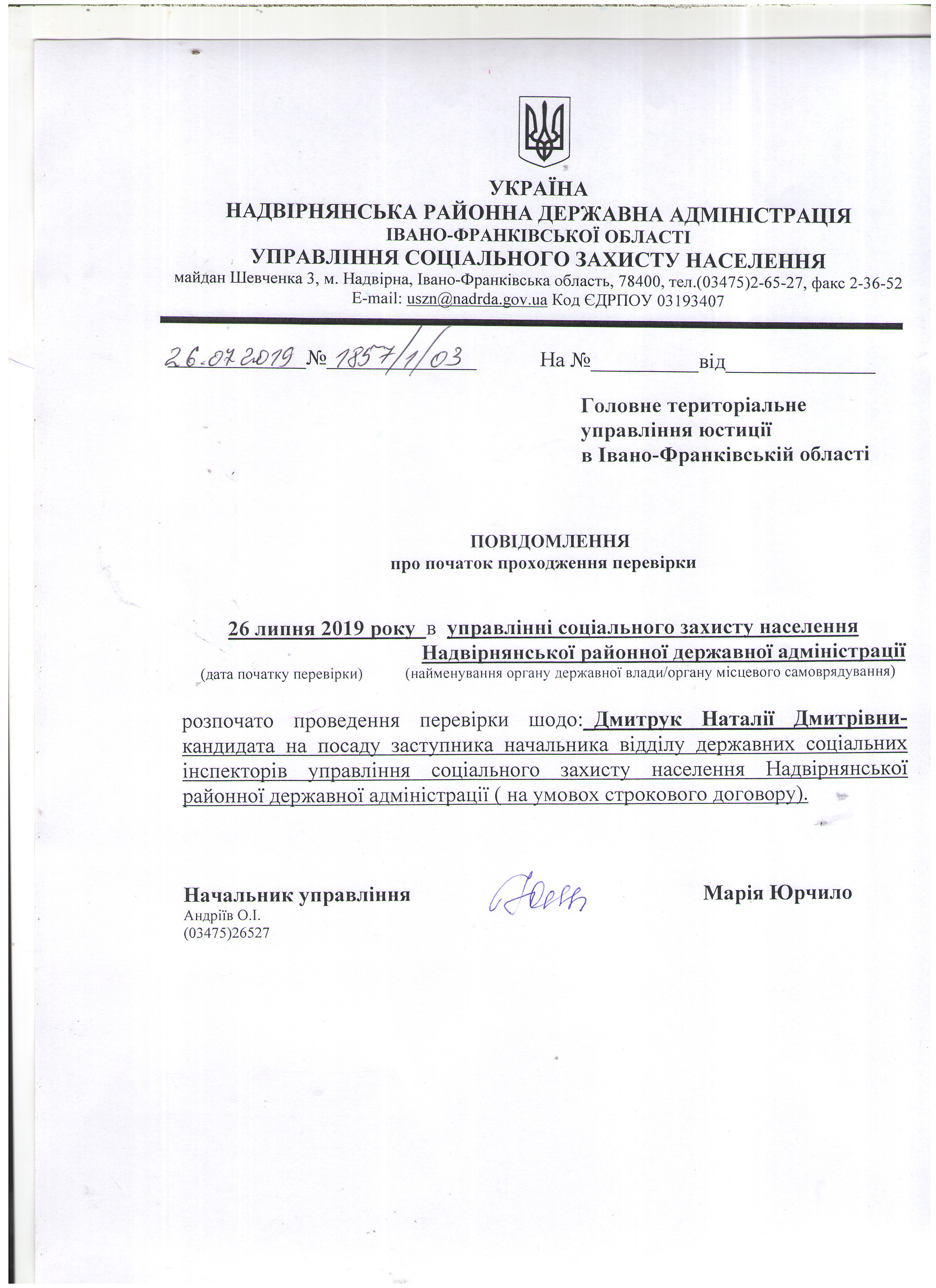 Повідомлення про початок перевірки